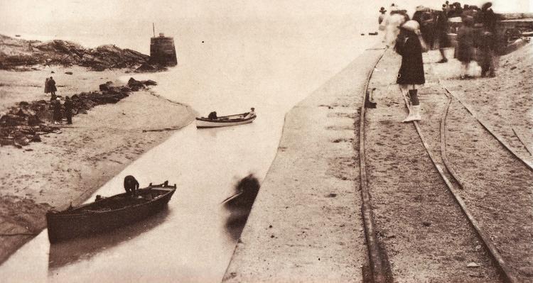Sand was originally moved off the beach pre 1920s via train to create sand bricks. The workshops in the harbour are made of the original sand bricks, and when the tide is very low, you can sometimes see the train tracks!
