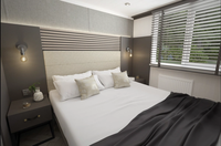 The spacious shower room includes a cubicle, sink, shaver socket, WC, heated electric towel rail and plenty of storage space. Outside the front of this home is your own private decking area with cosy lighting for sitting out at night.