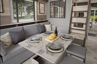 Our sensational Beach Houses are perfectly placed close to our private beach. Each offers ingenious compact living space, capable of comfortably seating and sleeping 6 people thanks to its clever raised bunk area. Facilities include an Optiflame electric stove and feature fire, a fully equipped kitchen, and a large washroom with a separate shower cubicle. There is one dinette pull-down double bed, one bunk twin or double bed, and a pull-out sofa in the lounge. From 25th May – 1st June and 20th July – 31st August 2024, holiday home bookings must be for multiples of one week. At all other times, short breaks are welcomed. Short breaks are subject to a minimum of three nights. During the booking stage, an interactive map will appear, allowing you to pick the perfect spot for your stay.