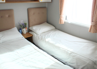 Our two-bedroom Platinum holiday homes are luxurious and offer one double and one twin room. All homes also have a pull-out bed settee acting as a good-sized double bed in the living room along with a Freeview TV, a DVD player, full kitchen facilities, and heating. In addition, most Platinum holiday homes have a sundeck. From 25th May – 1st June and 20th July – 31st August 2024, these Platinum holiday homes are only available for a Saturday arrival and must be booked in multiples of one week. At all other times, short breaks are welcomed. Short breaks are subject to a minimum of three nights. During the booking stage, an interactive map will appear, allowing you to pick the perfect spot for your stay.