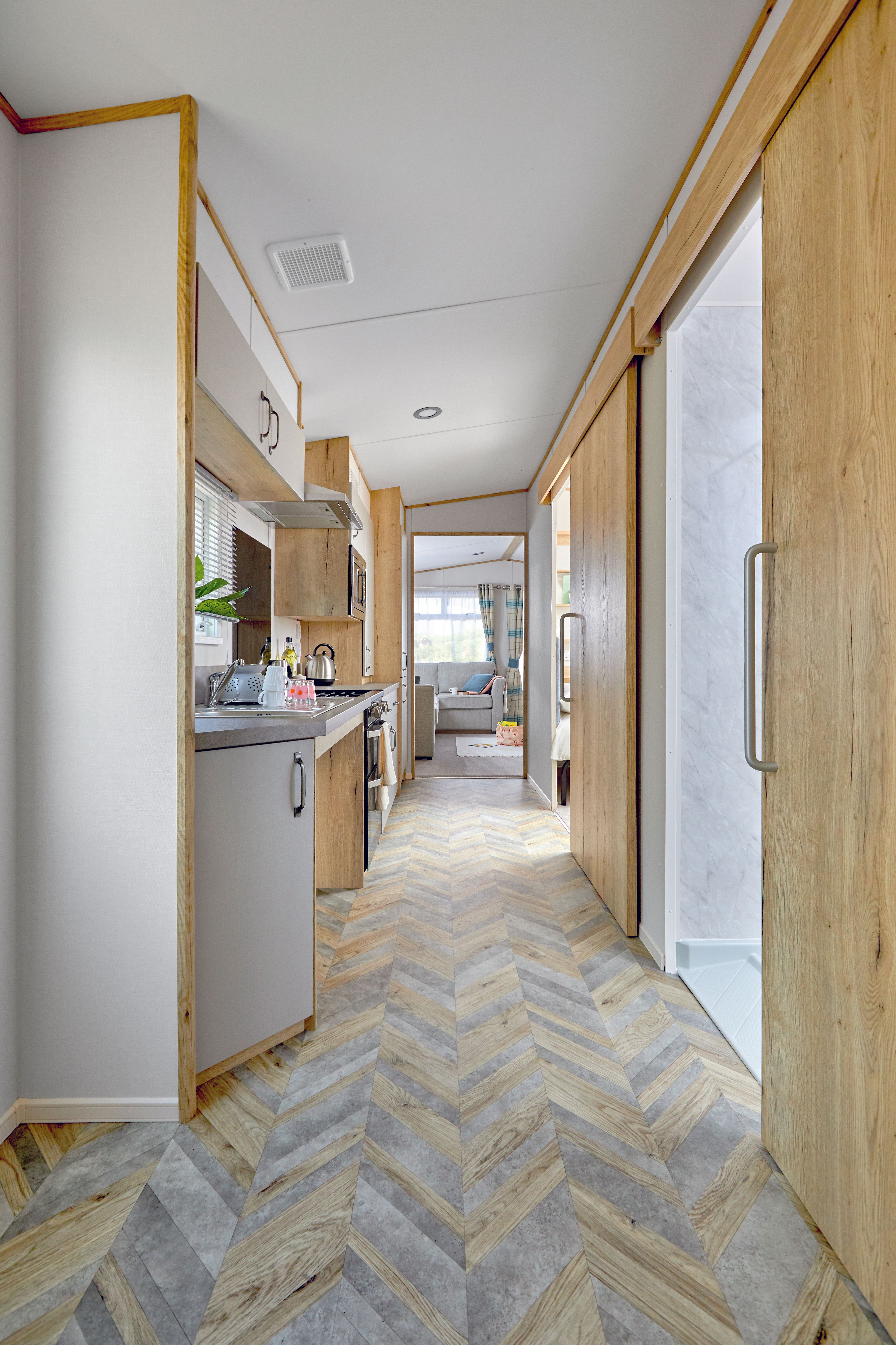 Luxury wheelchair-friendly two-bedroom holiday home with sun deck. This modern luxury home has full wheelchair accessibility with wider door frames throughout. It also comes complete with a Freeview TV, a DVD player, a wet room with Doc M disability equipment as well as full kitchen facilities, double glazing, and central heating. It also features a patient helper apparatus in the main bedroom with two 3 ft divan beds which can easily be pushed together to make a 6 ft double. The second bedroom also has two 3 ft divan beds. Please be aware this model has standard height base units in the kitchen area. From 24th May – 31st May and 26th July – 30th August 2025, these Platinum holiday homes are only available for a Friday arrival and must be booked in multiples of one week. At all other times, short breaks are welcomed. Short breaks are subject to a minimum of three nights. During the booking stage, an interactive map will appear, allowing you to pick the perfect spot for your stay. Initial prices are based on 4 people sharing. An additional 2 people can be added to the booking at our usual rate of £12.50 per person.