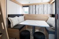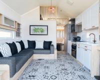 Our sensational Beach Houses are perfectly placed close to our private beach. Each offers ingenious compact living space, capable of comfortably seating and sleeping 6 people thanks to its clever raised bunk area. Facilities include an Optiflame electric stove and feature fire, a fully equipped kitchen, and a large washroom with a separate shower cubicle. There is one dinette pull-down double bed, one bunk twin or double bed, and a pull-out sofa in the lounge. From 25th May – 1st June and 20th July – 31st August 2024, holiday home bookings must be for multiples of one week. At all other times, short breaks are welcomed. Short breaks are subject to a minimum of three nights. During the booking stage, an interactive map will appear, allowing you to pick the perfect spot for your stay.